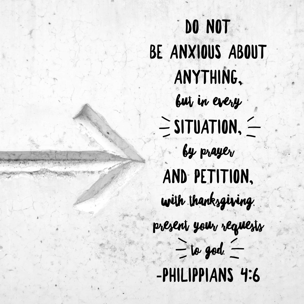 “Do not be anxious about anything, but in every situation, by prayer and petition, with thanksgiving, present your requests to God.”